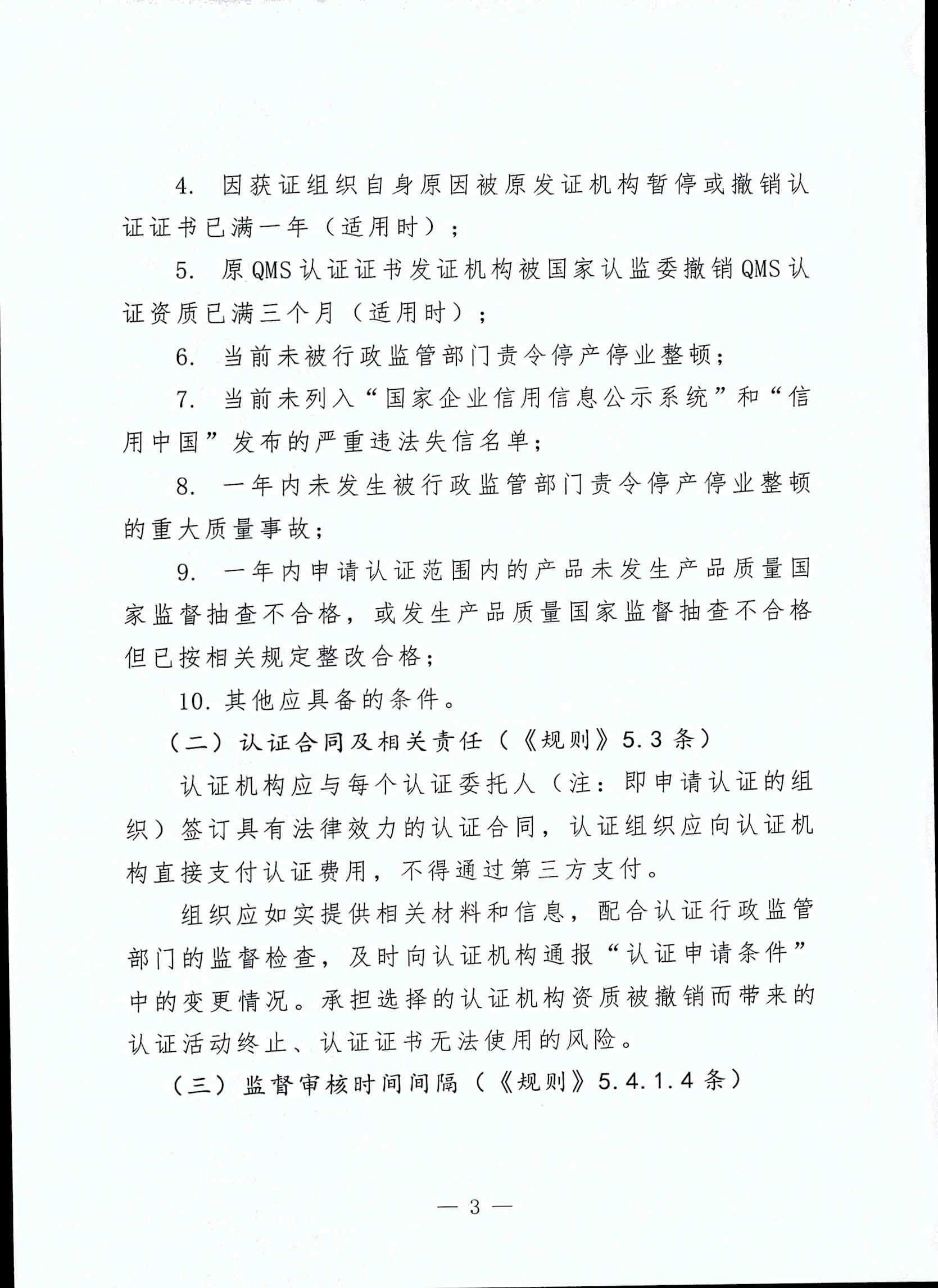 国家认监委新版《质量管理体系认证规则》有关要求的通知